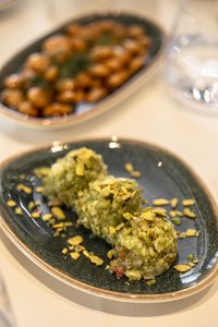 Somon Gravlax, hardallı füme dana kaburga, uskumru füme, kişnişli armut turşusu ve soslardan oluşan kara & deniztabağı ve takoz torik, narenciye sos, İstanbul fava, kırmızı soğan turşusu, dereotu kurusundan oluşan Karaköy tabağı lezzetli bir başlangıç sunuyor. Arasıcakta Abdi Bey’den geleneksel Anadolu Mutfağı’nın en hit yemeklerinden Adana kebap kıyması ile doldurulmuş içli köfte bulunuyor.
