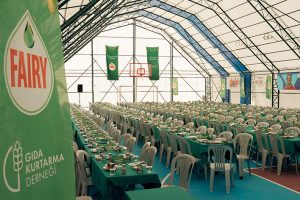 Fairy, proje kapsamında derneğin altyapısına yaptığı yatırımlarla gıda desteğine ulaşan ihtiyaç sahiplerini artırmayı amaçlarken, son yatırımıyla da Türkiye’nin ilk Gezici Gıda Bankası’nı hayata geçirdi. Derneğin sürdürülebilir gıda bağışı kapasitesini % 20 artıran Gezici Gıda Bankası, ilk gıda bağışını Gaziantep’in İslâhiye İlçesi’nde, P&G Türkiye’nin hayata geçirdiği Umut Evi kompleksinin de yer aldığı Memurkent Konteyner Kent’te yaptı. Fairy, sofraların bereketini paylaşmak için burada düzenlediği iftar daveti ile depremden etkilenenlerle bir araya geldi. Şef Rafet İnce’nin hazırladığı, sevilen ve özlenen yöresel lezzetlerden oluşan özel iftar yemeğinde yaklaşık iki bin kişiye Ramazan’da dayanışmanın ve bir arada olmanın sıcaklığını yaşattı.