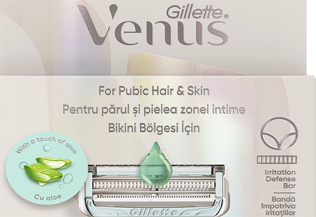 Hassas cilt yapısı ve kalın tüylerle diğer bölgelerden farklı bir tıraş yaklaşımı gerektiren bikini bölgesi için özel olarak tasarlanan Gillette Venus Bikini Bölgesi serisi, 3 adımda pürüzsüzlüğe ulaştırıyor. 2’si 1 Arada Temizleyici + Tıraş Jeli, bikini bölgesi için özel olarak tasarlanan Tıraş Makinesi ve Yedek Başlık Paketi, Günlük Yatıştırıcı Serum’dan oluşan dermatolog ve jinekologlar tarafından test edilmiş** seri; parfüm, paraben, boya ve silikon içermiyor. Bikini bölgesinin pH dengesine uyumlu ürünleriyle, batık ve kaşıntıyı önlemeye yardımcı oluyor.
