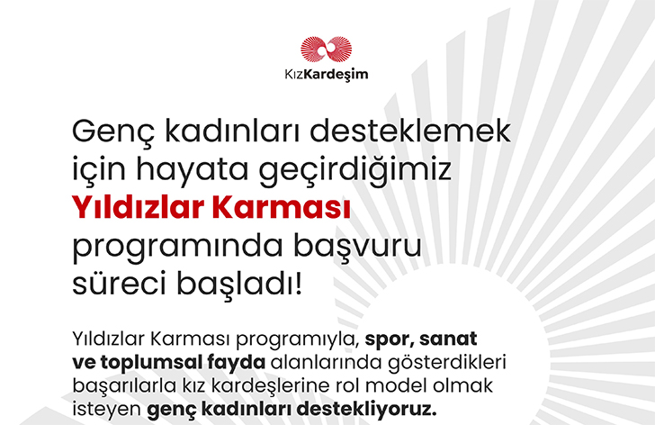 Kız Kardeşim Yıldızlar Karması Programı, sanat, spor ve toplumsal fayda alanlarında aktif olarak faaliyet gösteren, ulusal ve/veya uluslararası platformlarda başarı elde etmiş genç kadınların hayallerini gerçekleştirmeleri için ayni ve maddi desteklerle yardımcı olmayı hedefliyor. go.ahb.app/ykbasvuru adresinden başvuruya açılan programa son başvuru tarihi 31 Ekim 2023.