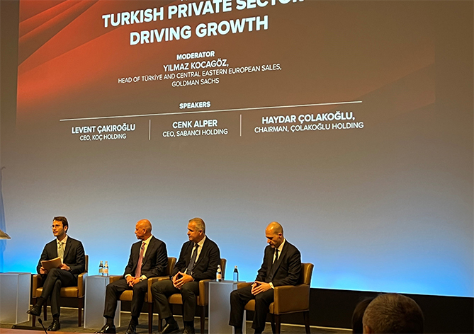 Koç Holding CEO’su Levent Çakıroğlu’nun katıldığı “Turkish Private Sector Drives Growth” (Türk Özel Sektörü Büyümeye Öncülük Ediyor) adlı panelin moderatörlüğünü Goldman Sachs International Türkiye ve Orta ve Doğu Avrupa Satış bölümünden sorumlu Direktör Yılmaz Kocagöz yaparken, Sabancı Holding CEO’su Cenk Alper ve TEB Yönetim Kurulu Üyesi Haydar Çolakoğlu katılımcılar arasında yer aldı.