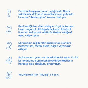 Meta’nın duyurduğu yeni güncellemeyle birlikte Facebook uygulamasında Reels formatında videolar izlemek ve paylaşmak mümkün olacak. Güncellemeyle birlikte, kullanıcıların Reels deneyimini daha kaliteli hale getirmek için yeni video oluşturma araçları da kullanıma sunulacak. Oluşturulan Reels videoları, Hikayeler’de, Facebook Watch’ta ve Haber Kaynağı’nda görüntülenebilecek.