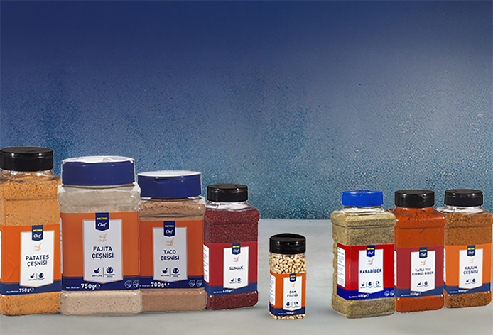 Profesyonel mutfaklara hitap eden Metro Chef baharat ailesi 24 farklı baharat çeşidiyle, temel ihtiyaçları karşılamakla kalmayıp dünya mutfağından da esintiler sunuyor. Sumak, karabiber, toz kırmızı biber, pul biber, kekik, nane, çörek otu, susam ve fesleğen gibi klasiklerin yanı sıra kajun, garam masala, Harissa, Sriracha, taco ve fajita gibi farklı kültürlerin baharat çeşnilerini de mutfaklara taşıyor.