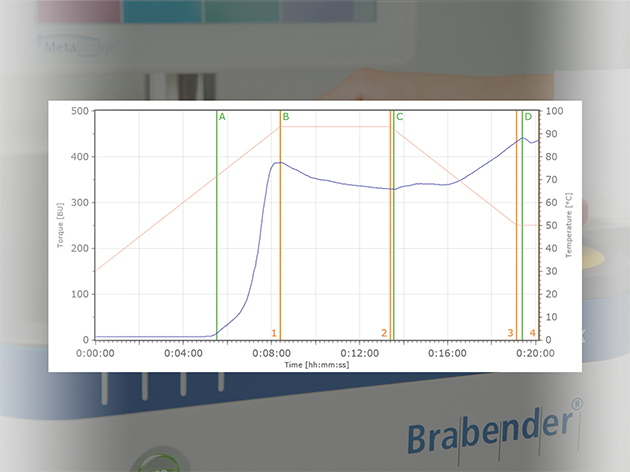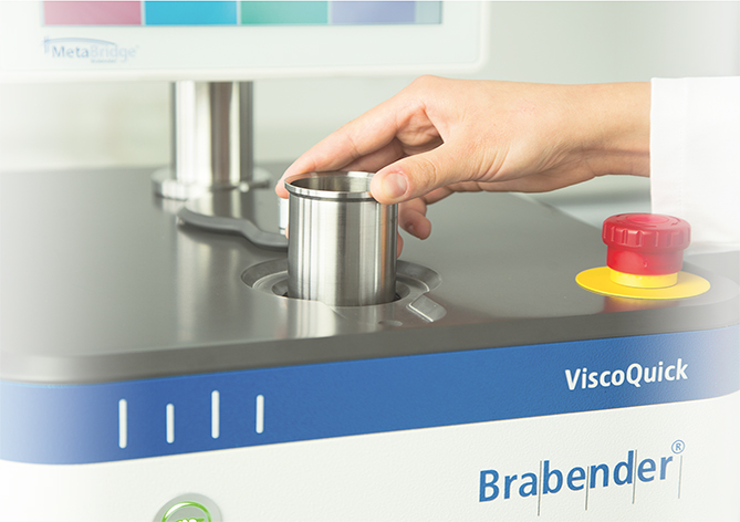 Herhangi bir ilave soğutma cihazı olmadan 93°C’den 6°C’ye kadar soğutma sıcaklık profilleri sağlayan Brabender ViscoQuick kullanılarak, numunelerin karşılık gelen soğuma özellikleri ölçüldü.