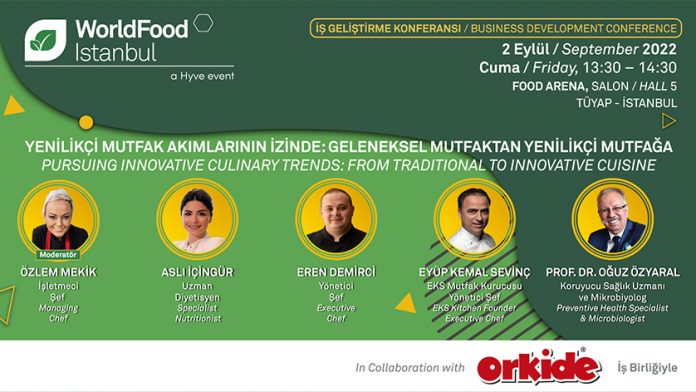 Food Arena etkinlik alanında 2 Eylül 2022 Cuma günü 13:30-14:30 saatlerinde Orkide’nin ev sahipliğinde düzenlenecek “Yenilikçi Mutfak Akımlarının İzinde: Geleneksel Mutfaktan Yenilikçi Mutfağa” başlıklı panelde; farklı ülkelere ve yörelere özgü lezzetlerin, klasik kurallara bağlı kalmadan global trendlerin etkisiyle yaratıcı şekillerde harmanlanmasıyla mutfak kültürümüzde oluşan farklı mozaik yapı ele alınacak.
