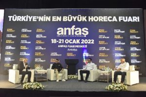 Gastronomi sektörünün ünlü ve önemli isimleri, 18-21 Ocak 2022 tarihleri arasında Antalya’da ANFAŞ Uluslararası Fuar ve Kongre Merkezi’nde düzenlenen 32. ANFAŞ Hotel Equipment-Uluslararası Konaklama ve Ağırlama Ekipmanları İhtisas Fuarı ve 28. ANFAŞ Food Product-Uluslararası Gıda ve İçecek İhtisas Fuarı’nda düzenlenen panelde buluştu. Türkiye’nin en büyük HORECA buluşmasında gerçekleşen “Turizm Destinasyonlarında Farklı Yaklaşımlar” başlıklı panel, özellikle fuara gelen aşçılar, aşçı adayları ve turizmciler tarafından büyük ilgi ve beğeni ile takip edildi.