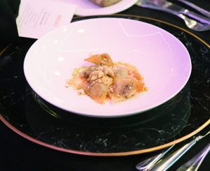 Christian Weij’in mutfaklarda sıfır atık felsefesini destekleyen “Düşük Atıklı Menüler” trendi çerçevesinde hazırladığı Fermente Portakal Kabuğu Şurubu, Elma Sirkesi, Küflü Ekmek Miso, Olgunlaşmamış Domates, Sebze Kabuklarıyla Yapılmış Acı Sos, Kahve Telvesiyle Yapılmış Balzamik Sirkesi’yle başlayan gece, her trendin özenle sunulduğu farklı tabaklarla devam etti.